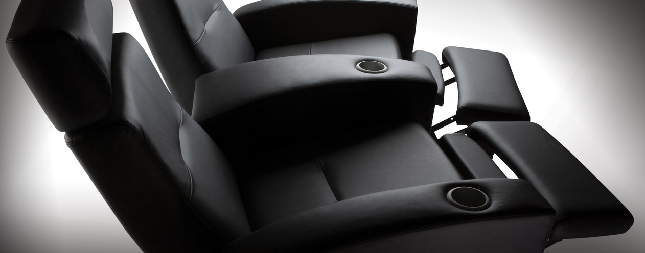 Le fauteuil de salle de cinema privé Matteo de chez Salamander Designs offre le confort d'un grand siège sur une empreinte au sol faible.