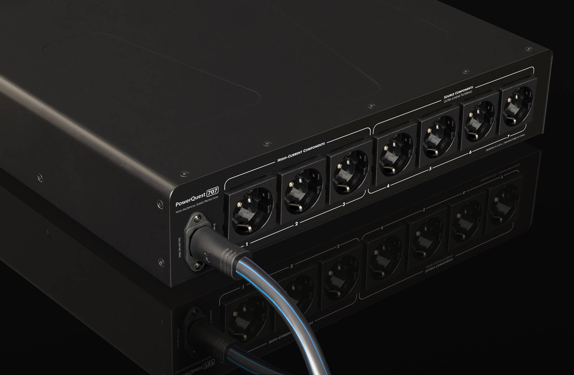 Les trois nouveaux modèles PowerQuest montables en rack — le PQ-303, le PQ-505 et le PQ-707 — adoptent l'approche complète d'AudioQuest en matière de conditionnement de l'alimentation CA, traitant le bruit de manière linéaire pour fournir une réduction du bruit à large bande passante de premier ordre (meilleure que -22dB).