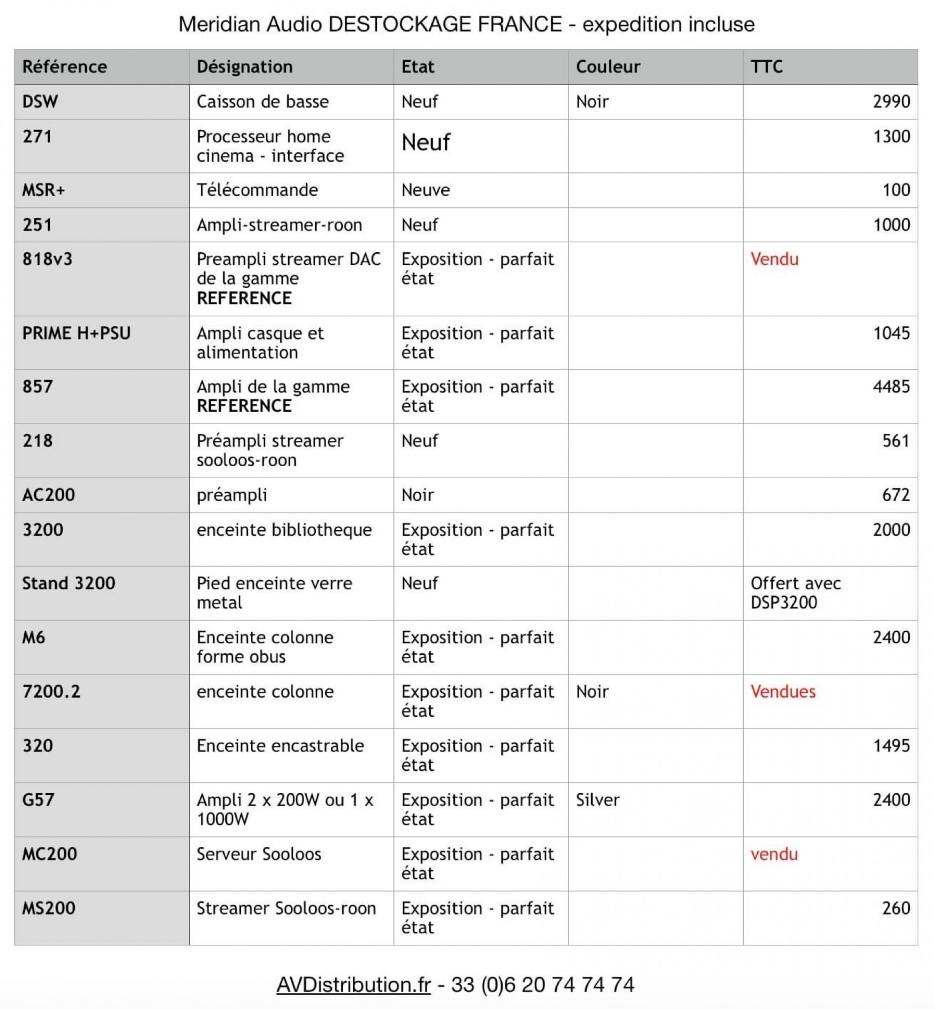Déstockage Méridian audio