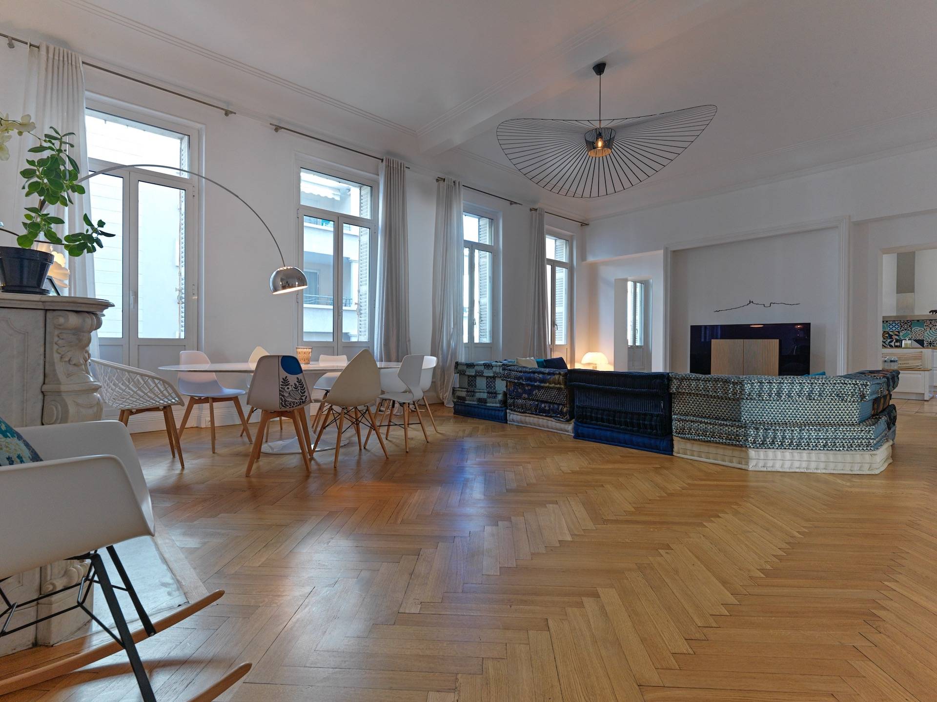 La grande pièce salle à manger salon ne se prêtait pas à une installation complexe et complète à cause de ses grandes fenêtres.