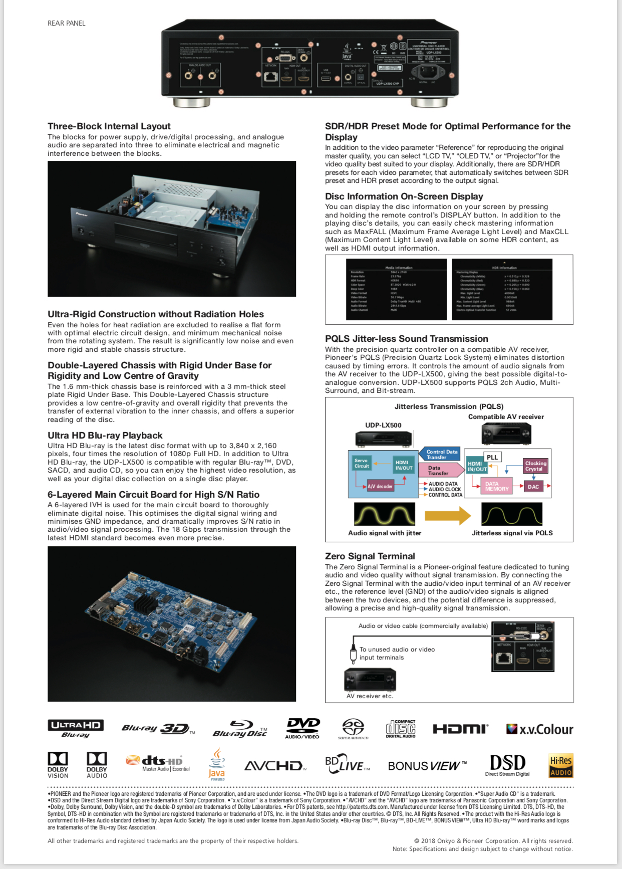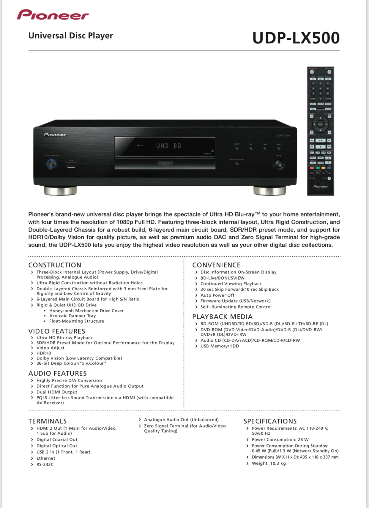 Lecteur Blu-ray 4K pioneer UDP-LX500