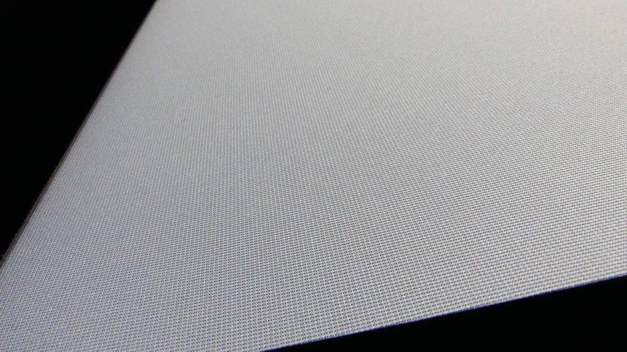 Il s'agit d'un nouveau tissu tricoté avec un traitement optique spécifique, acoustiquement transparent et améliorant la réflexion de la lumière incidente à partir de l'angle typique d'un projecteur UST.