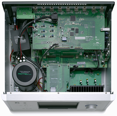 Rotel est un constructeur d’appareils audio : les six convertisseurs numériques/ analogiques (DACs) dont l’appareil est équipé sont des Wolfson 24 bits / 192 kHz, avec quatre DACs indépendants pour les voies frontales gauche, centrale et droite ainsi que pour le caisson de graves et deux DACs partagés pour les voies surround.