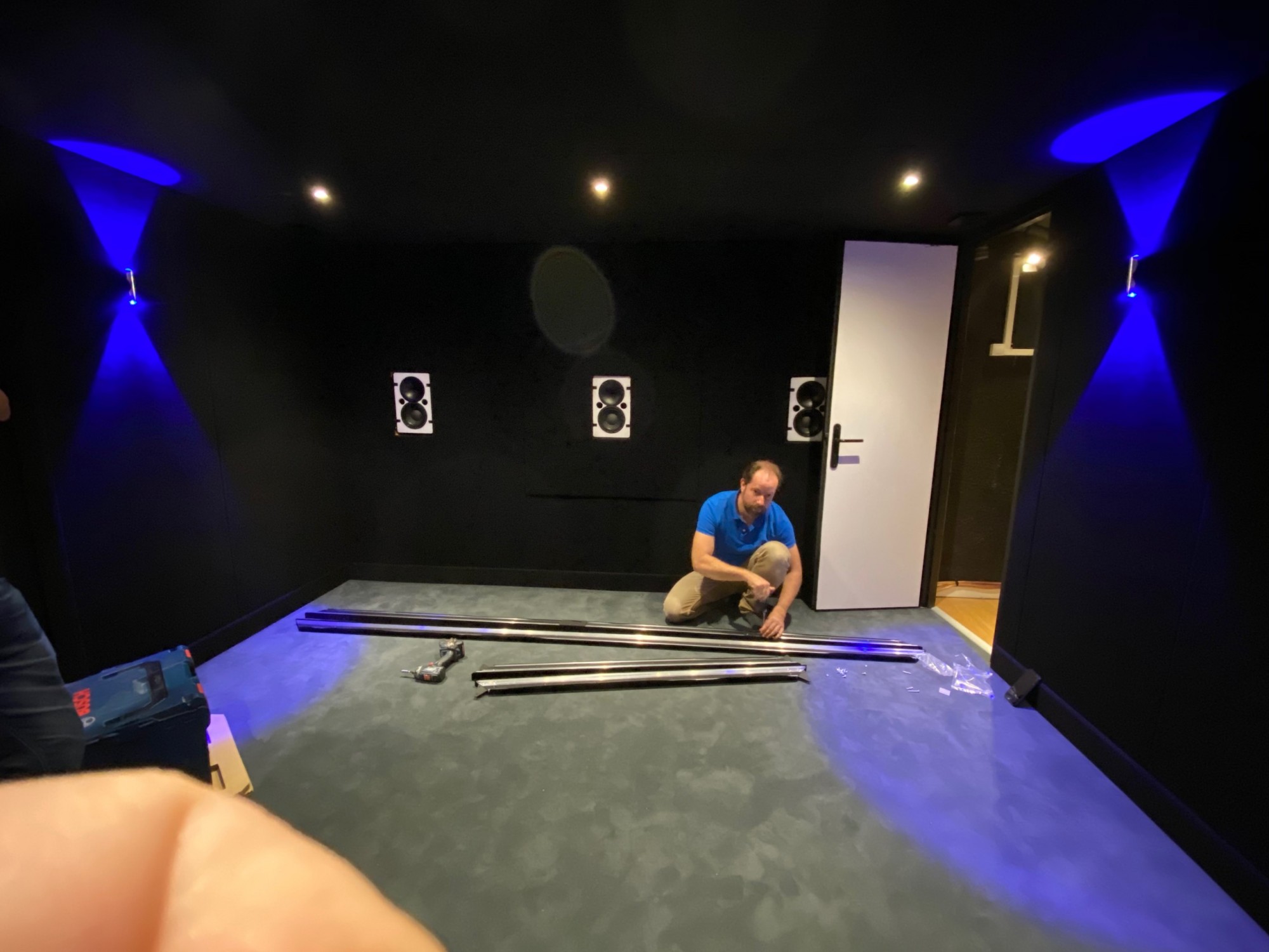 Le projet : réaliser un salon cinéma 5.1.2 en sous sol avec un espace cosy et agréable.